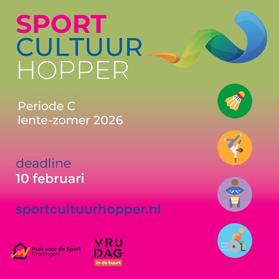 De Sport- en Cultuurhopper is een online verzameling sport- en culturele cursussen aangeboden door verschillende sport- en cultuuraanbieders. Hiermee kunnen inwoners uit de gemeente Groningen op een laagdrempelige manier gratis of tegen geringe kosten kennismaken met een sport of activiteit.