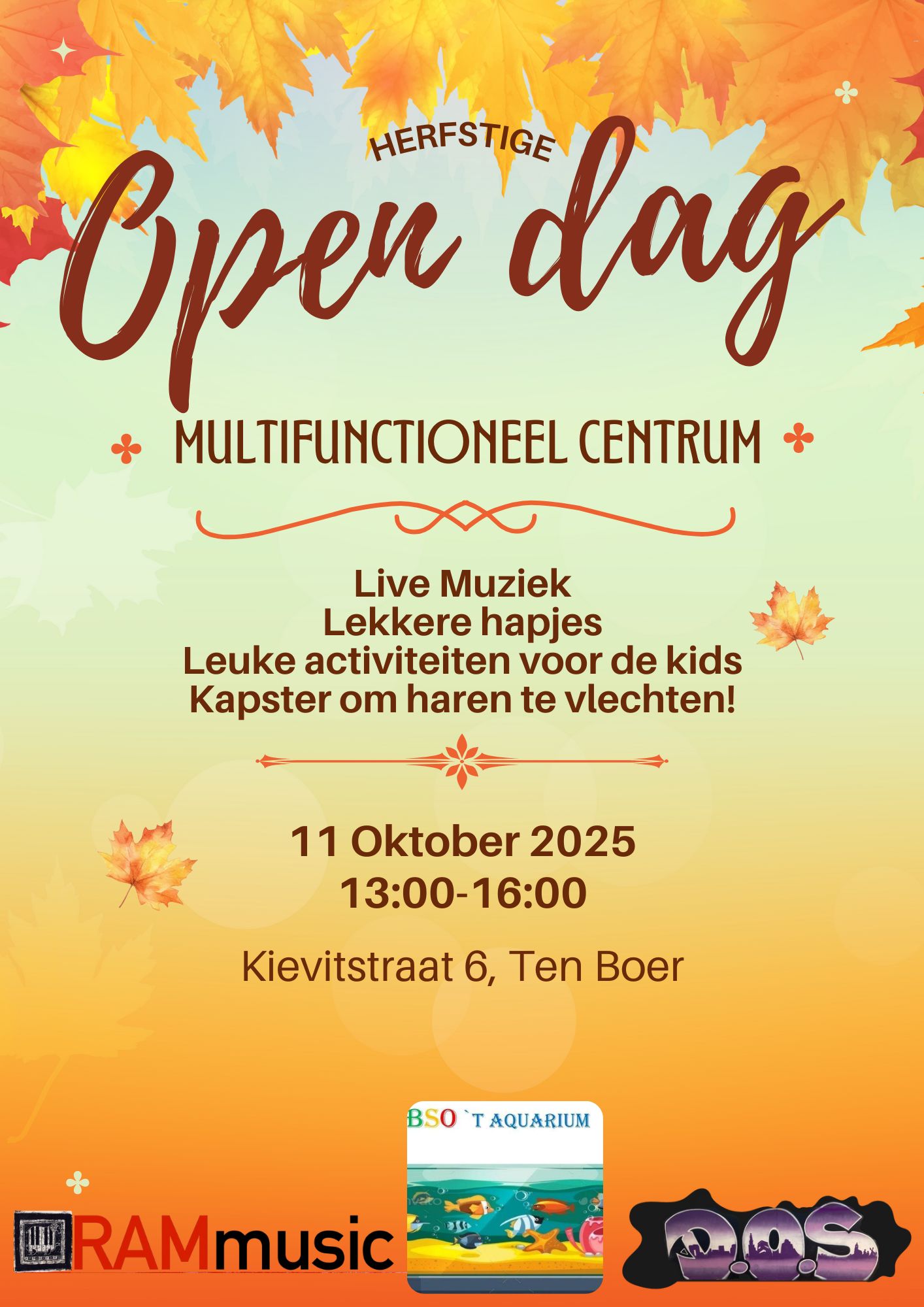 Kom een kijkje nemen bij/in kinderopvang Het Aquarium, Igor's Muziekstudio en DOS. Er zijn hapjes, live muziek, kinderactiviteiten en je kan haar laten invlechten onder andere.
