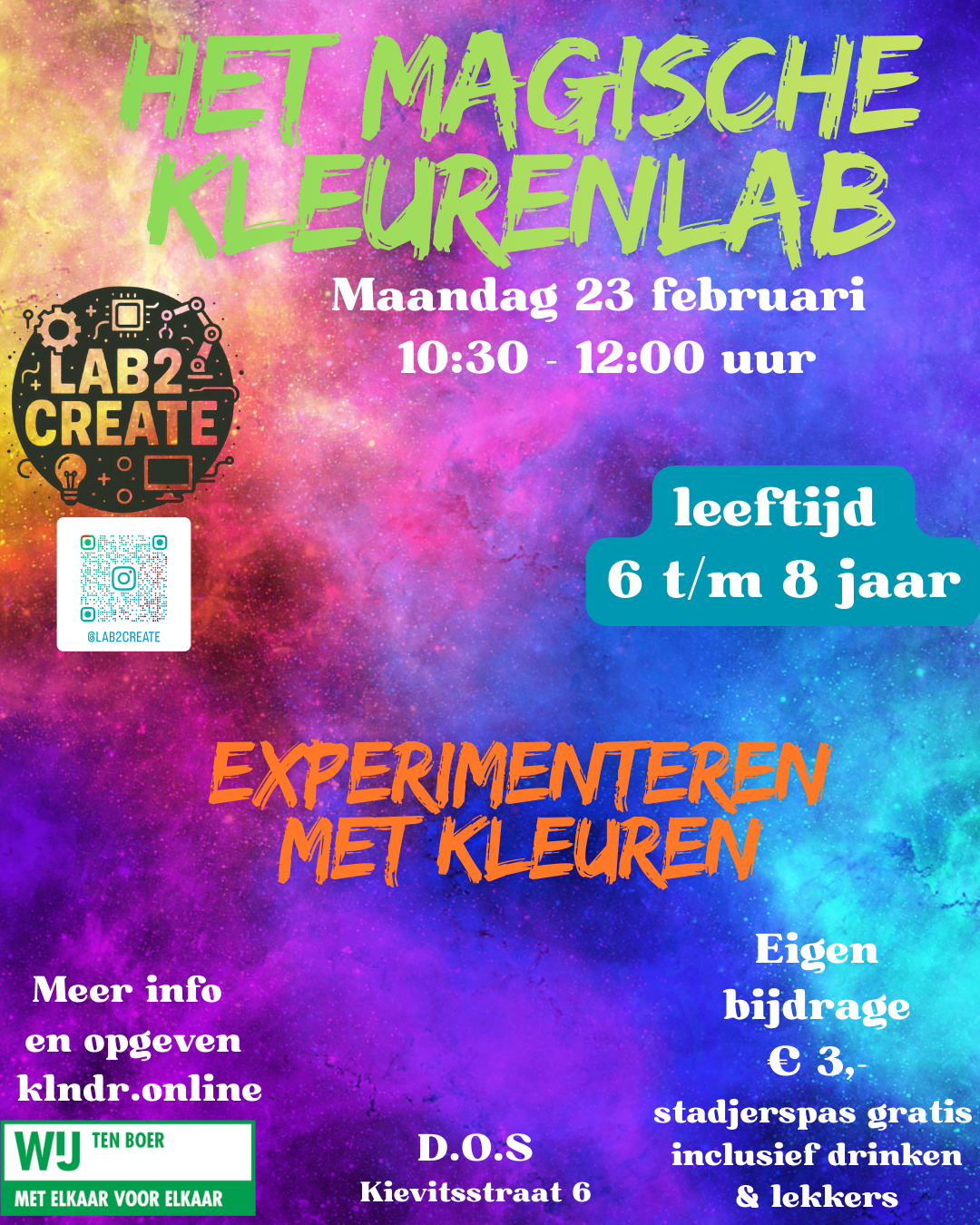 De kinderen gaan onder leiding van Giovanna van Lab2create op verschillende manieren experimenteren met kleuren. Zo komen de skittelproef, verfspinner, filterproef en een regenboog van kleuren aan bod.